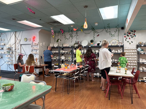 Choose from a wide variety of pottery items, from sushi plates and serving platters to tons of fun kid items. We’ll help you gather containers of paints from our large selection, so you can create any image you desire. Then, we’ll fire your pottery, and you can pick it up about 10-14 days later.